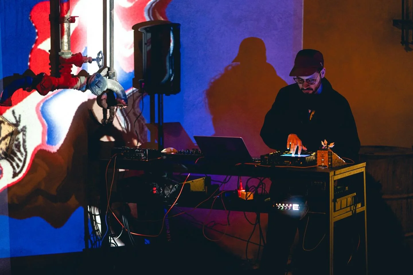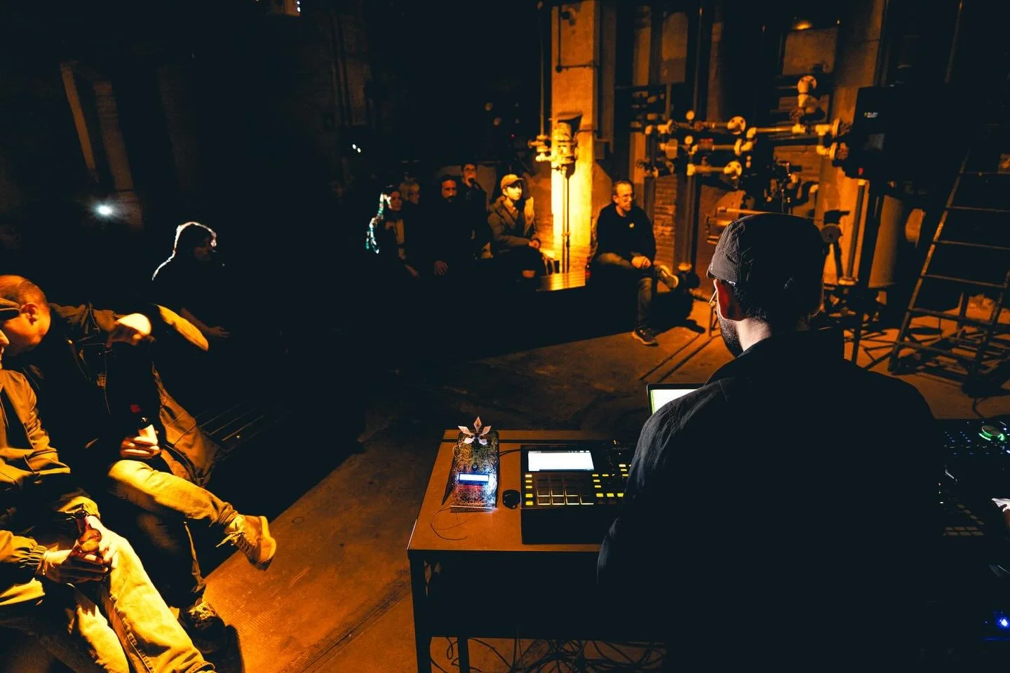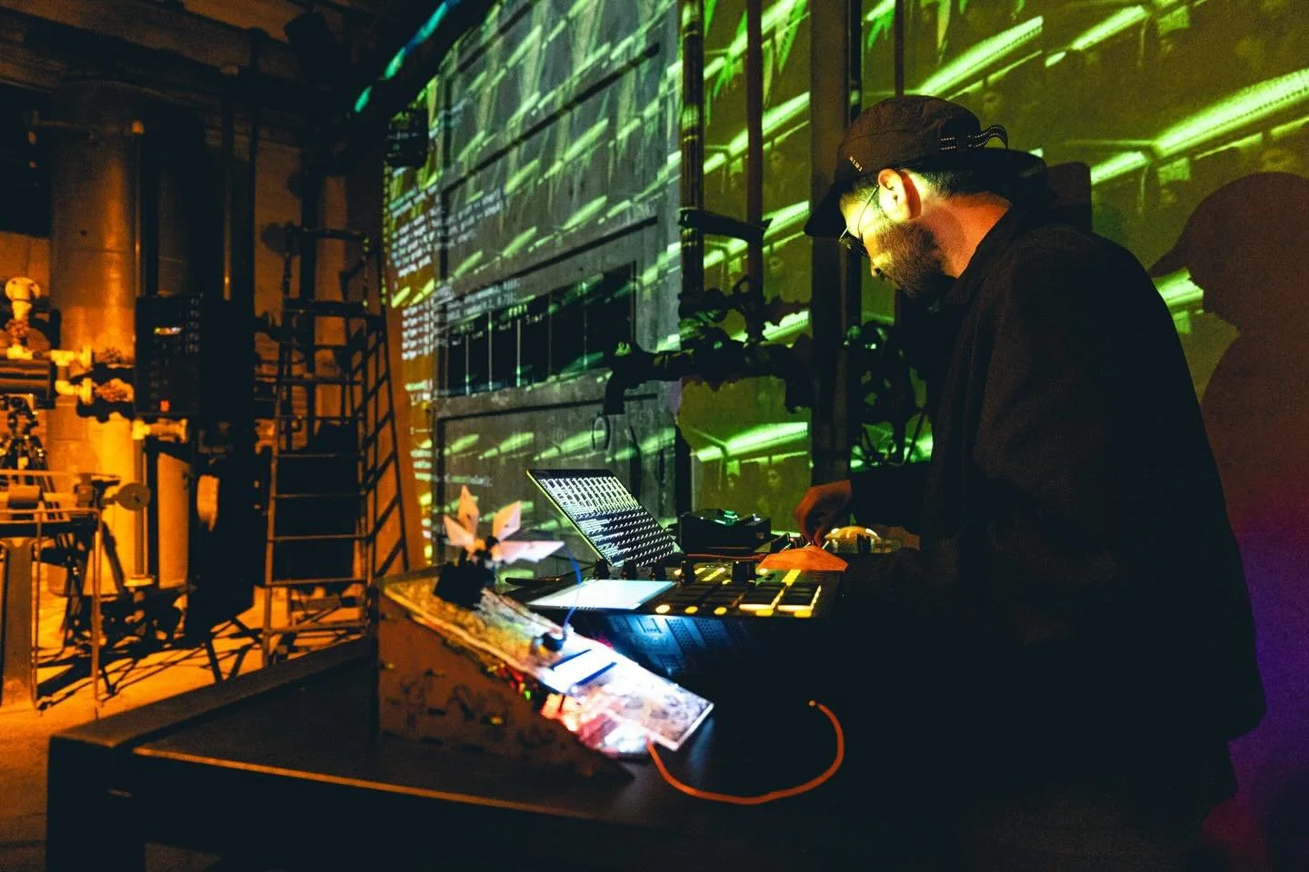 Live performance built from photographs and field recordings captured in Barcelona's metro system. Using Pure Data for generative audio and p5Live for live-coded visuals, the piece reconstructs the sonic and textural richness found underground — sounds and textures that often go unnoticed by commuters. The performance brings that hidden layer to the surface, turning everyday transit noise into a full audiovisual environment.